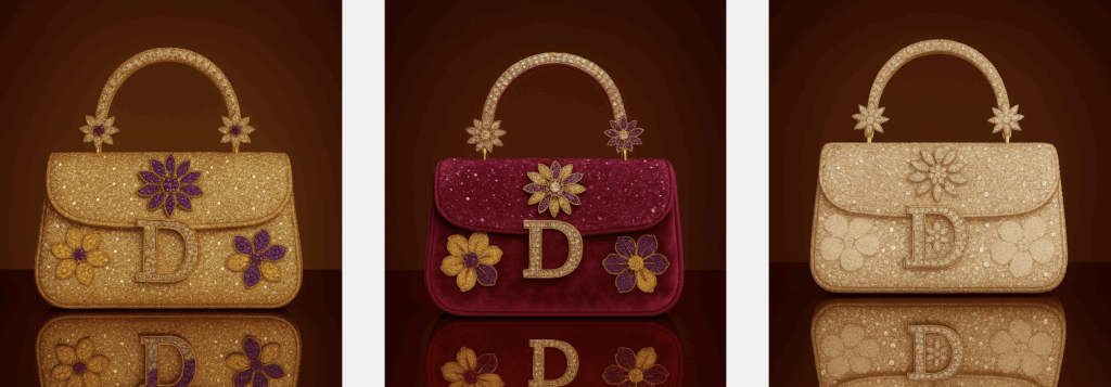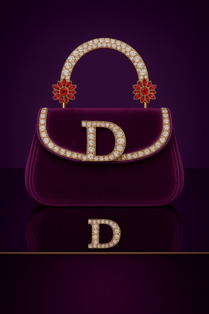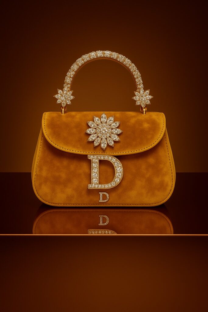 Confectionné en daim somptueux, orné d’un emblème« D » incrusté de diamants et de fermoirs floraux éclatants, ce modèle capture la majesté du lever du soleil. Sa silhouette raffinée en fait un compagnon intemporel de jour comme de nuit.