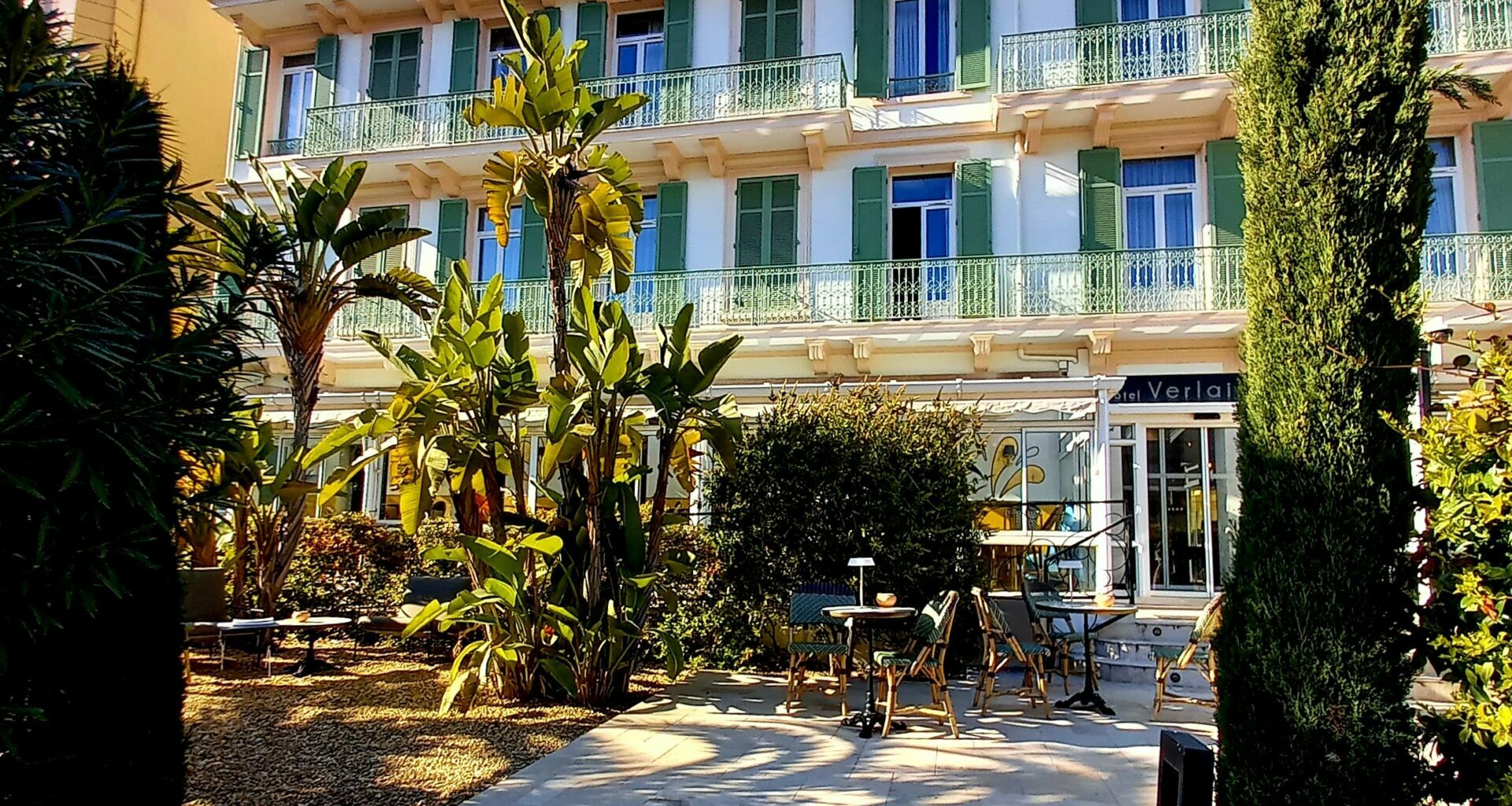 L’Hôtel Verlaine**** est un hôtel intimiste, composé de 46 chambres, situé à quelques pas de la Croisette (58 boulevard d’Alsace, 06400 Cannes), où le rythme animé de Cannes s’adoucit pour laisser place à un jardin méditerranéen baigné de lumière naturelle. Il offre une autre façon de vivre Cannes, en toute sérénité, alliant le confort à la douceur de vivre méditerranéenne. Situées dans une résidence du XIXe siècle restaurée avec soin, les chambres racontent une histoire de couleurs et de lumière, chaque étage révélant sa propre atmosphère et sa propre personnalité. Une palette de tons naturels, de matériaux authentiques et de détails soigneusement choisis crée une atmosphère qui encourage l’exploration, la connexion et les rencontres significatives.